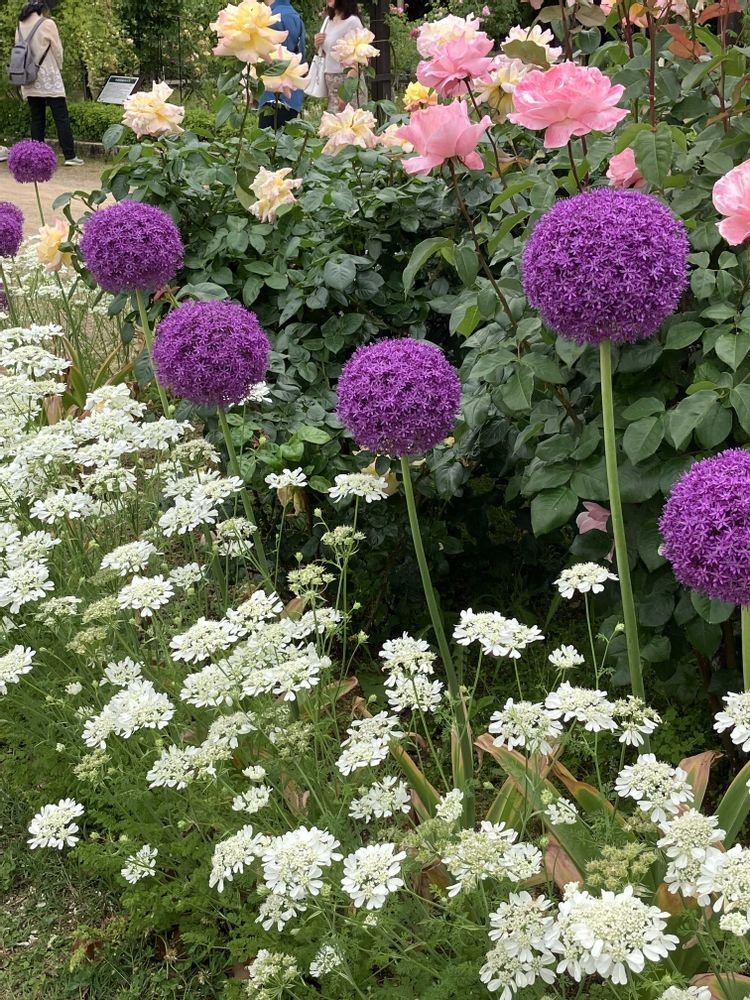 アリウム・ギガンチウムとオルレア、バラのコラボが素敵でした💓
