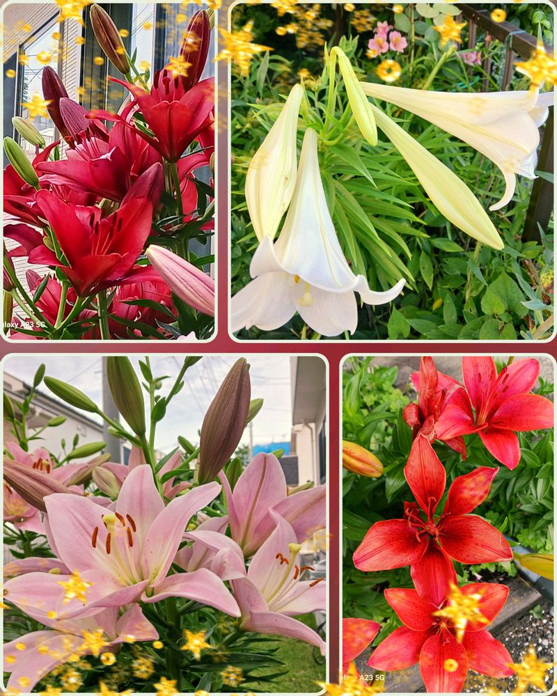 ユリのお花がたくさん咲いていて綺麗✨ですね。色とりどりで楽しくなりますね。