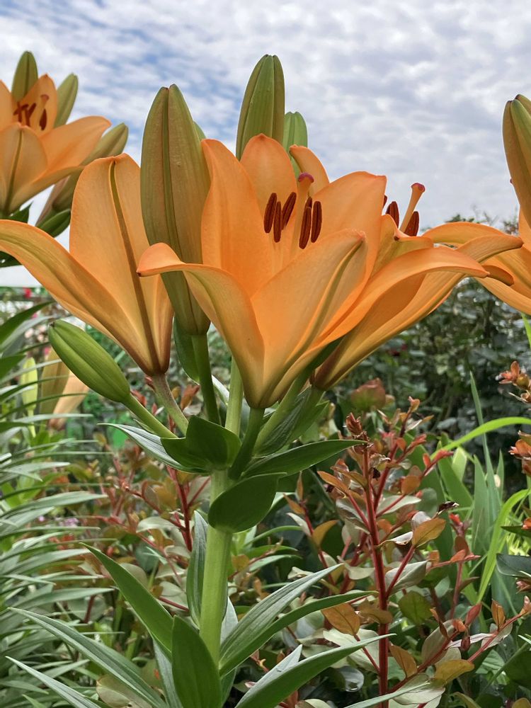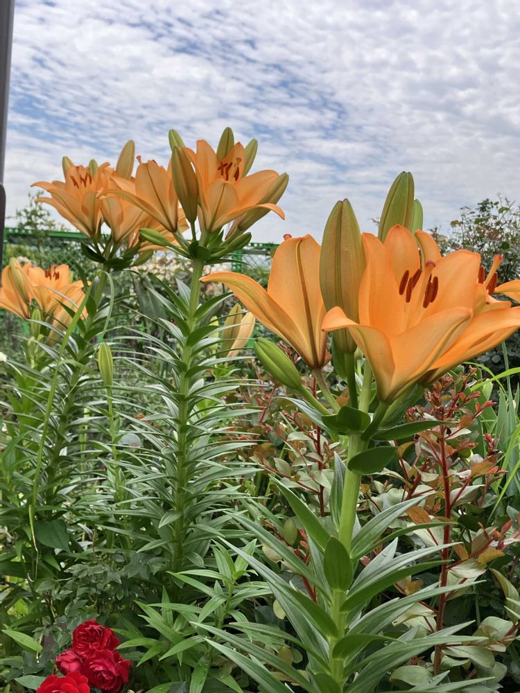 スカシユリが空をバックに笑顔を見せてくれて、嬉しかったです♪🧡🌿