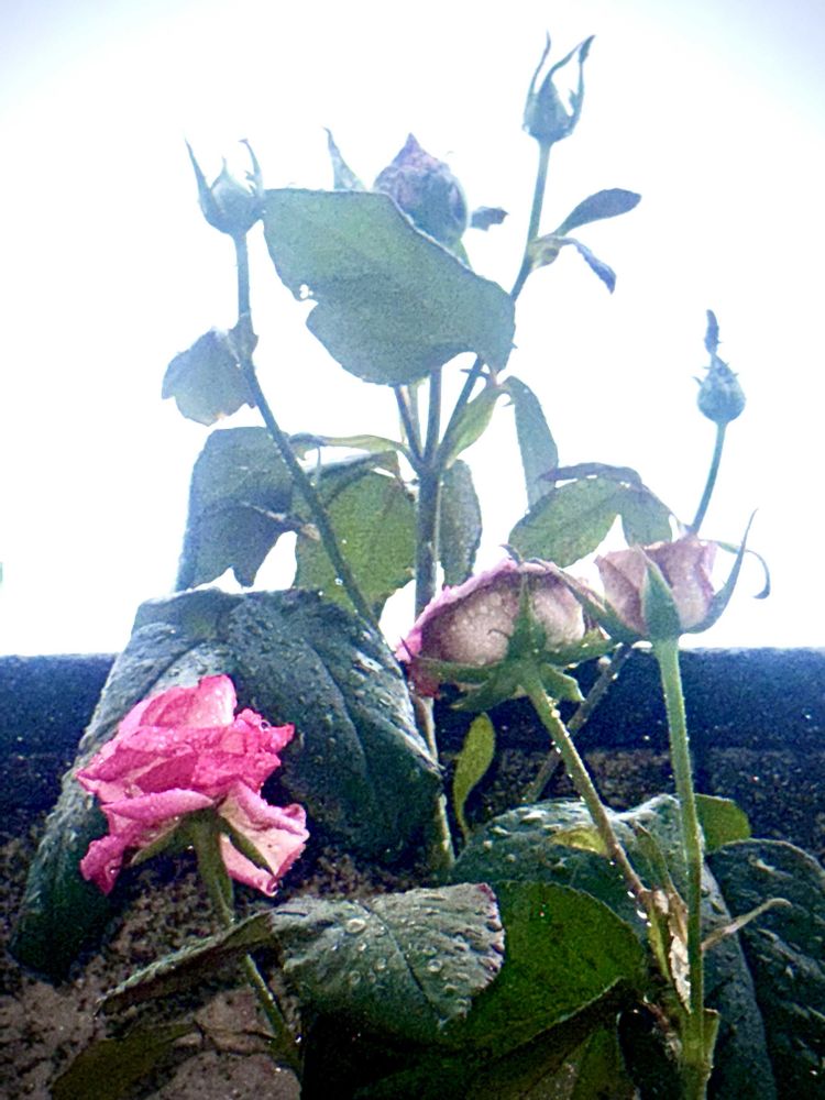 📝ベランダで🪴鉢植えで植栽・養生中の赤い薔薇🌹ドナルド・レーガンが、雨風にゆらゆら揺れながら生き生きとして踊っているかのように見えましたので、パチリ撮ってみました。