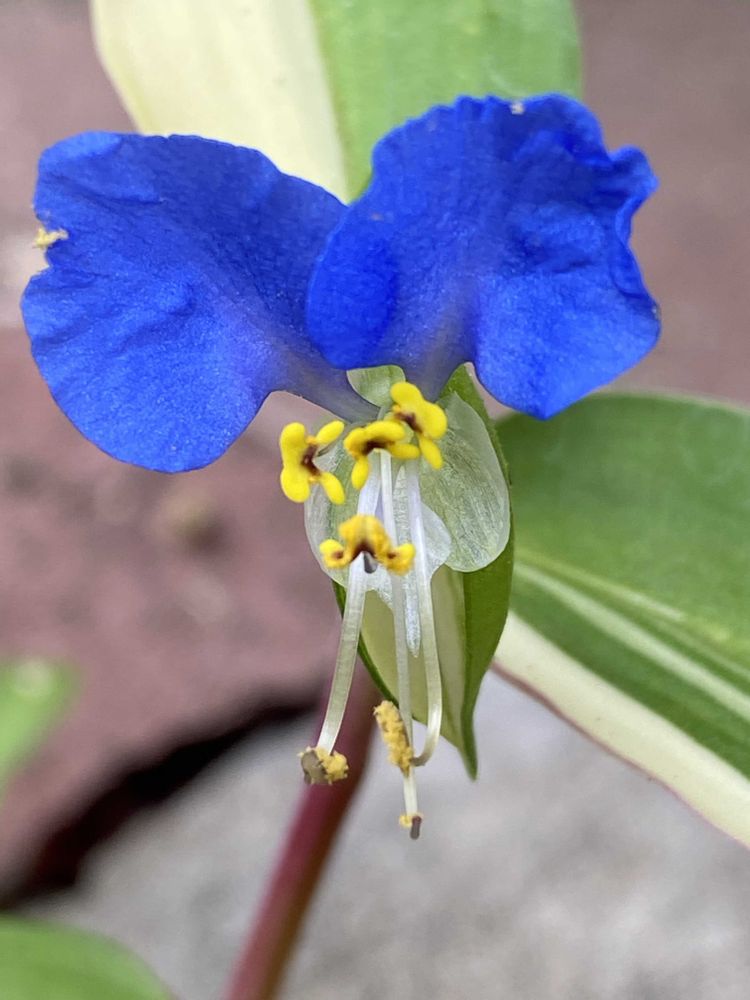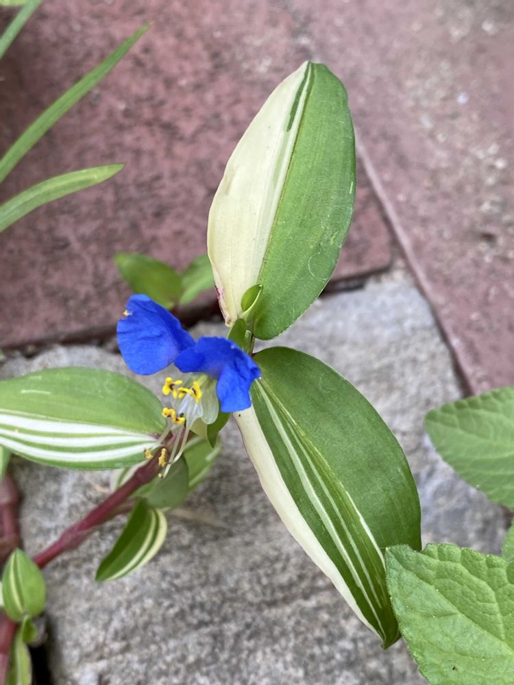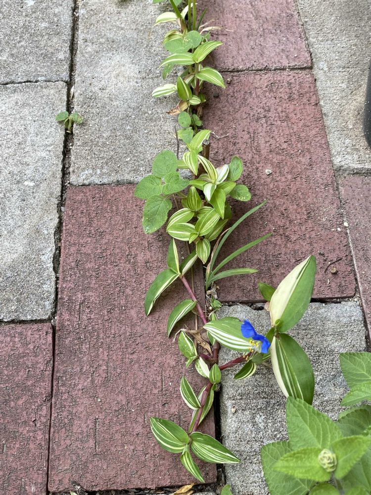 通路のタイルの隙間に生えた苗が成長して、花をつけ始めました。
