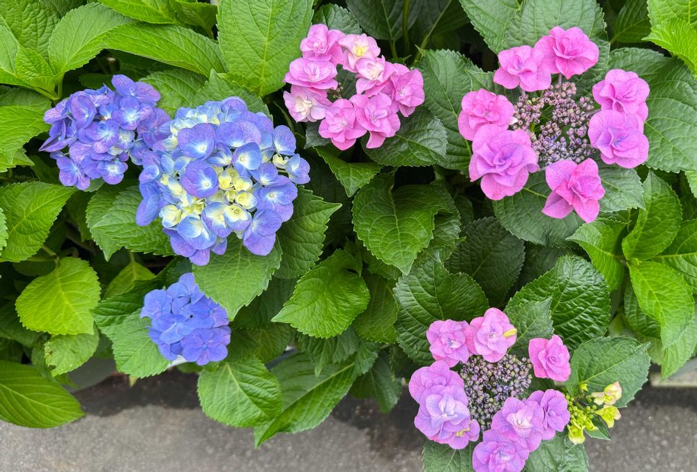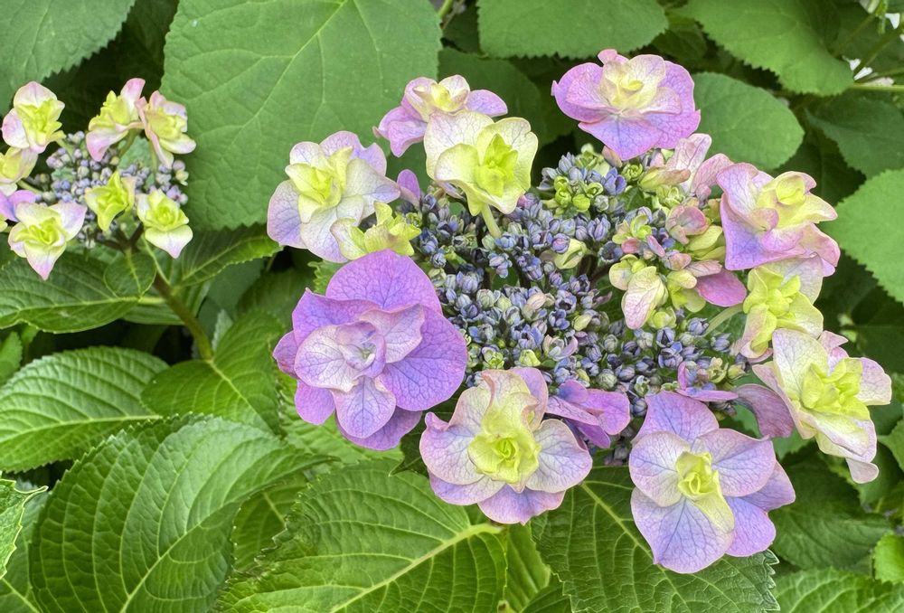 今朝の紫陽花 「月組」は、色んな色の段階が見れます。