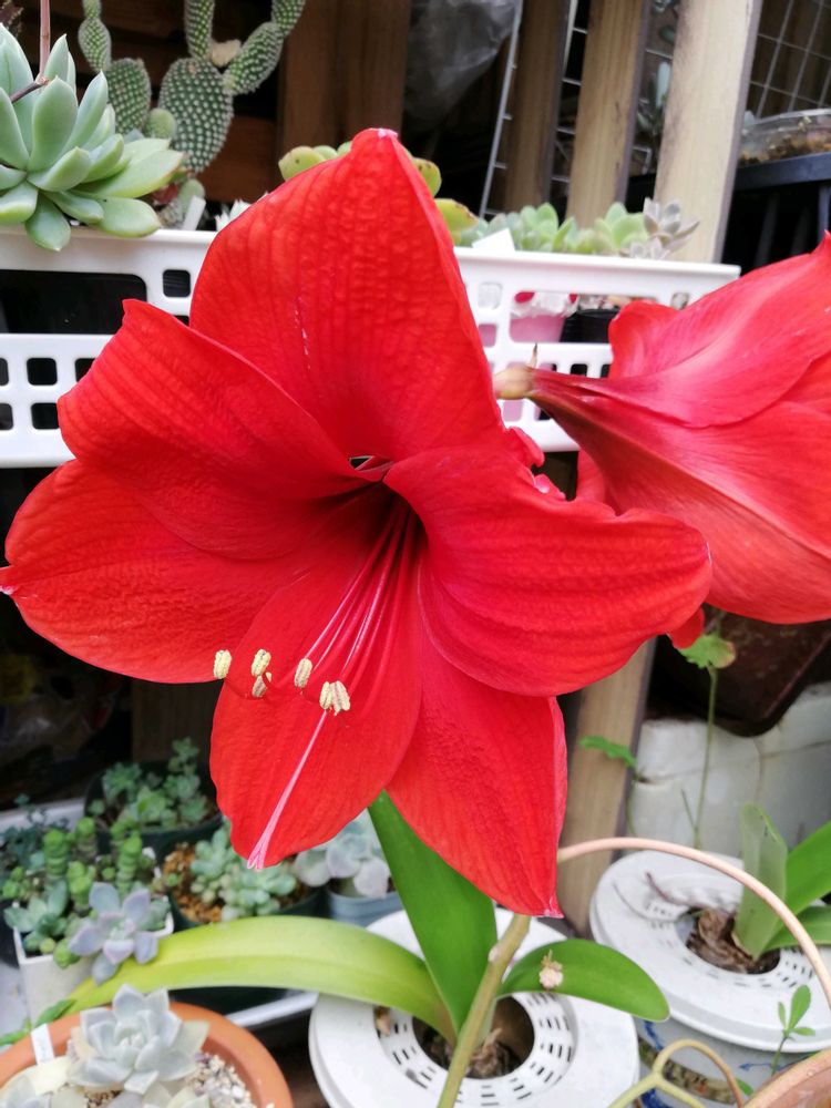 赤い アマリリスみたら 🎼アマリリスの曲くちずさんじゃう🎶😅