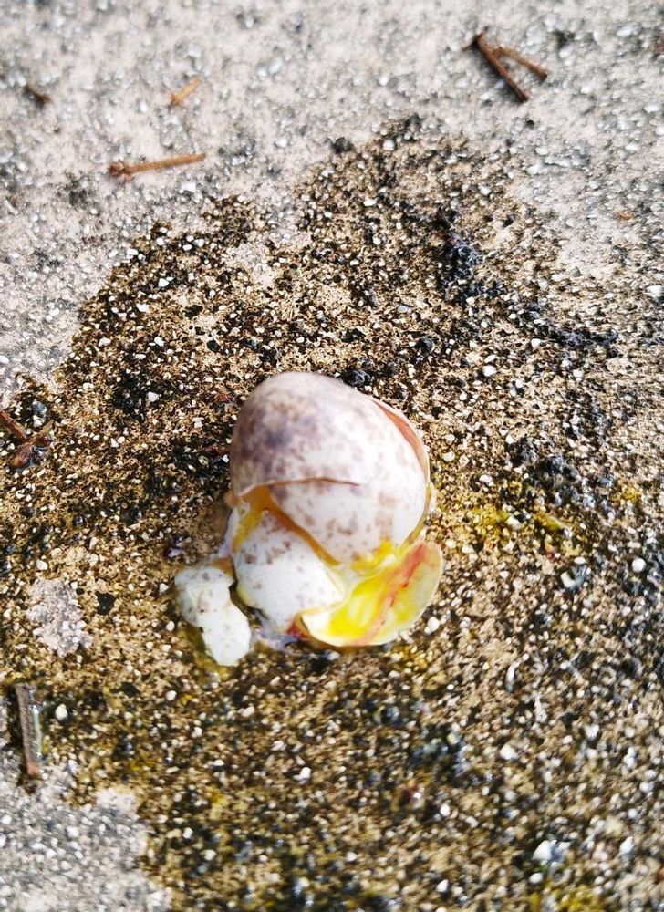 今朝確かめたら花壇の中と道路に割れたまごですよ・・