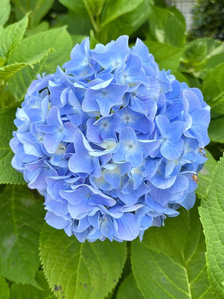 日本原産のガクアジサイを改良した園芸品種でホンアジサイとも呼ばれます。土が酸性だと青色、アルカリ性だと赤色になります。リトマス試験紙みたいですね!