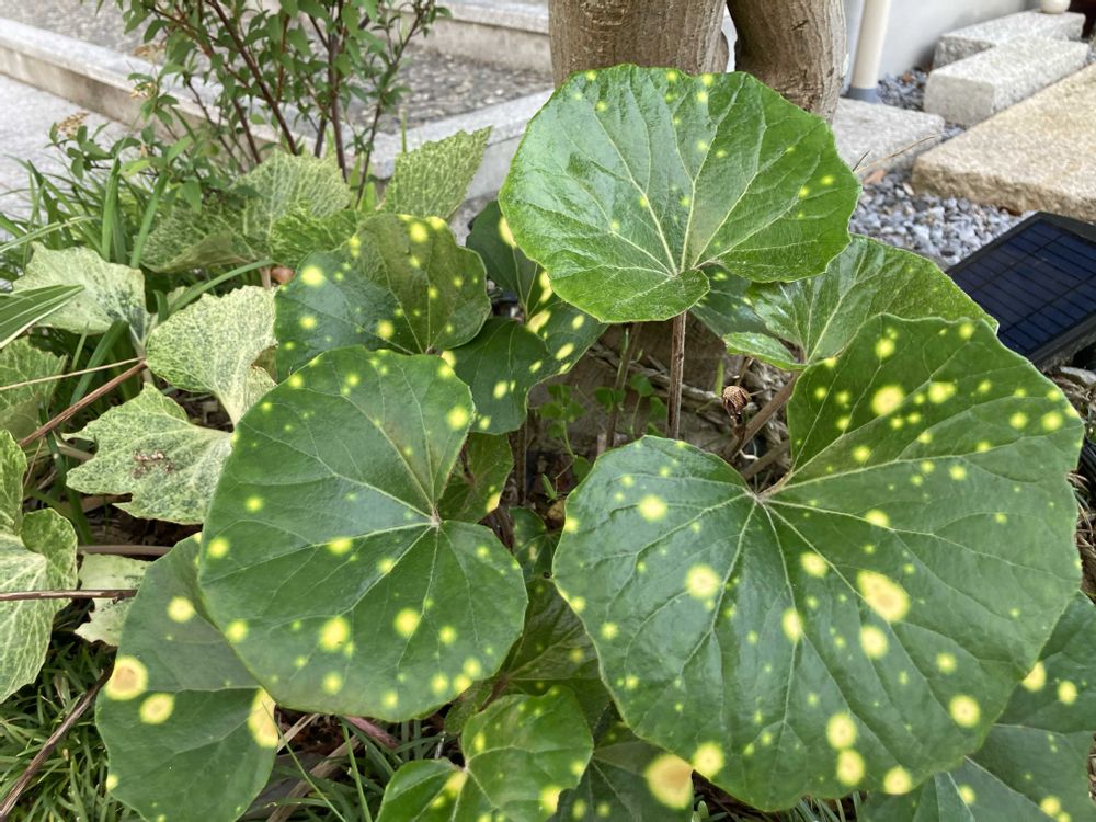 葉っぱは草間弥生さんの水玉に見えます〜🟢🟡