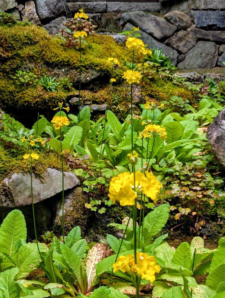 クリンソウの花期は過ぎていましたがキバナクリンソウが見頃で 丁寧に手入れされたお庭は坂道を登って見に来た甲斐がありました😊