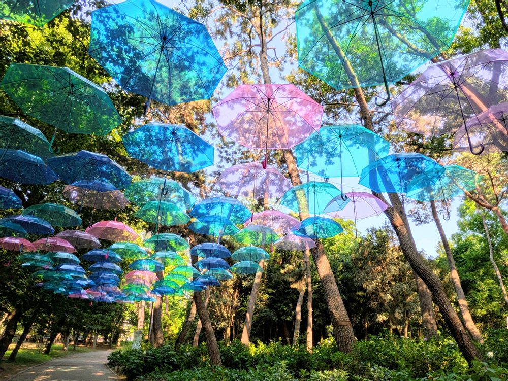 あじさい園の近く、花菖蒲の手前の傘や風鈴の映えスポットも素敵でした😊