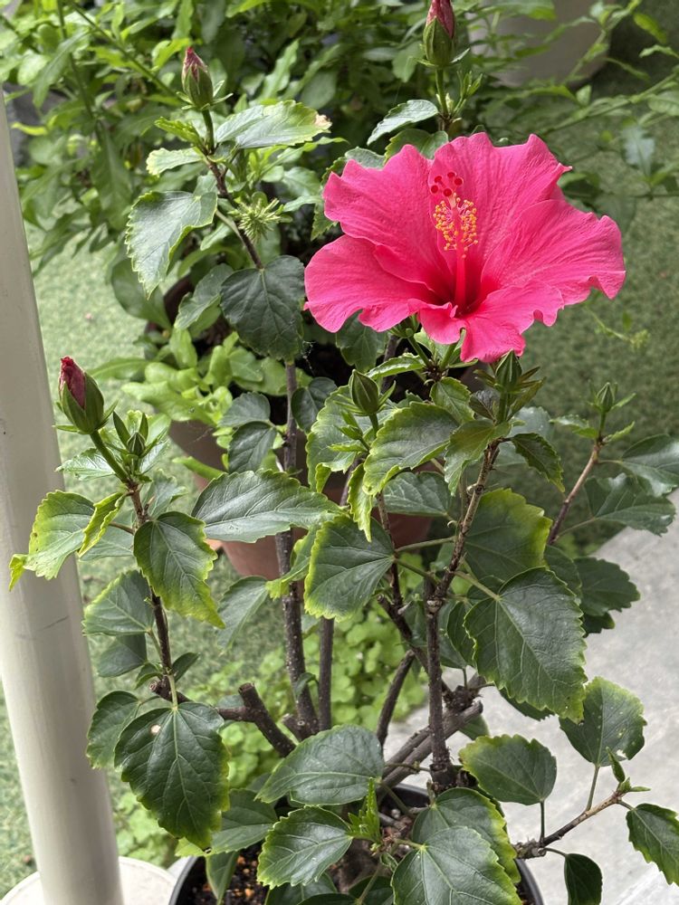 おっ、ハイビスカスが外で咲いたんやね🌺