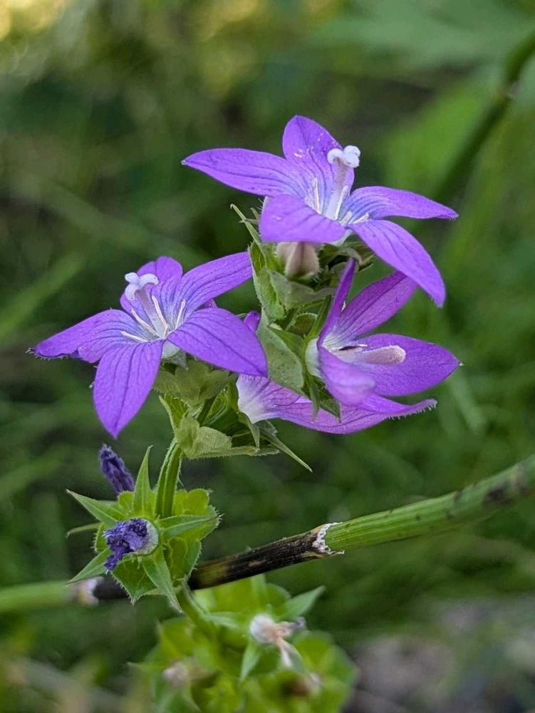By the roadside I come across Small purple flowers Blooming step by step Unyielding to the summer’s relentless heat Clasping Bellflowers