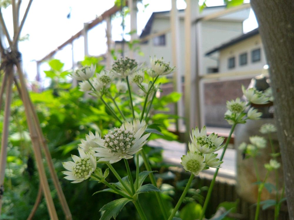 白いアストランティア、葉っぱはもりもりなんですね〜🌿恥ずかしがり屋さんかな😆
