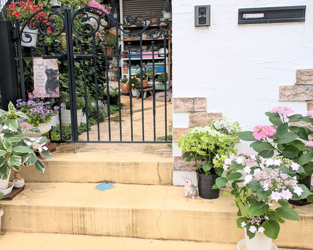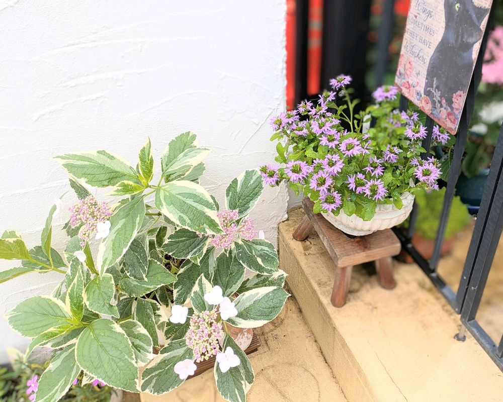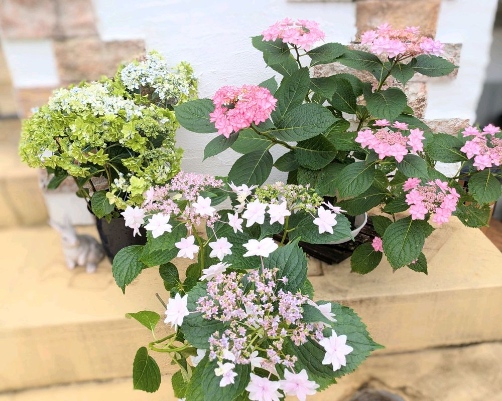 明日からの大雨に備えて、階段に置く鉢を紫陽花にチェンジ