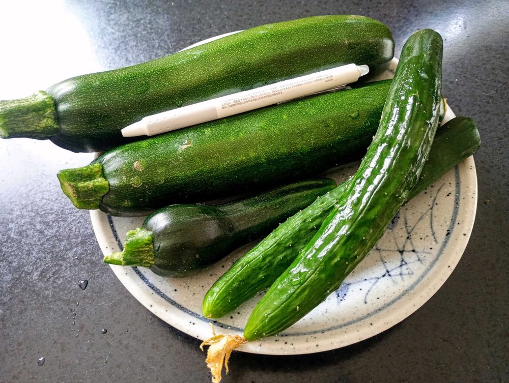我が家、ズッキー🌱🌱2株、キャウリ🥒2株からの初収穫です🤲💕
