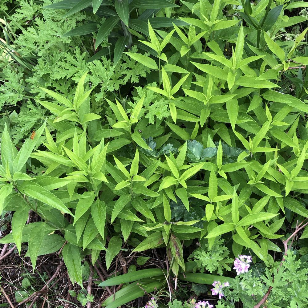 2.リアトリス。2021年 5株植え付け。22〜23は2株生存。24年1株だけになって、このまま滅びるかなーと思ったら今年は3茎に増えた。茎が歪に歪みながら成長中。
