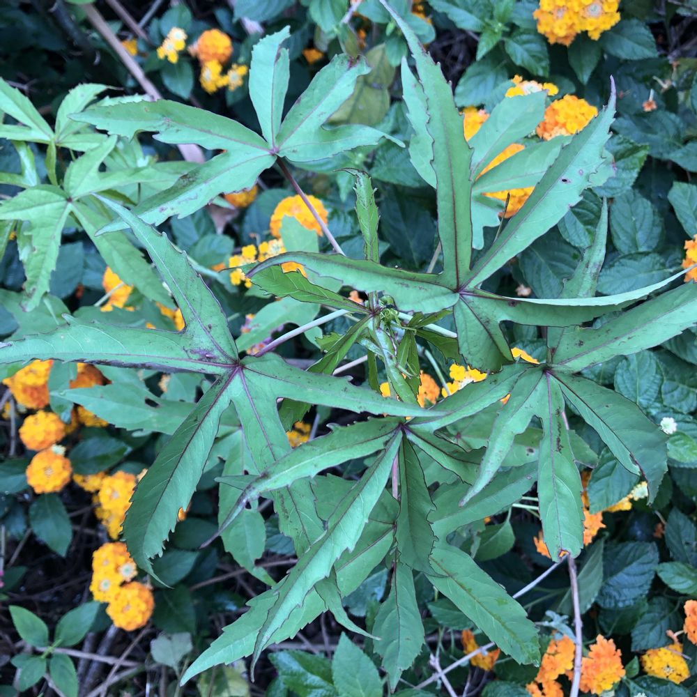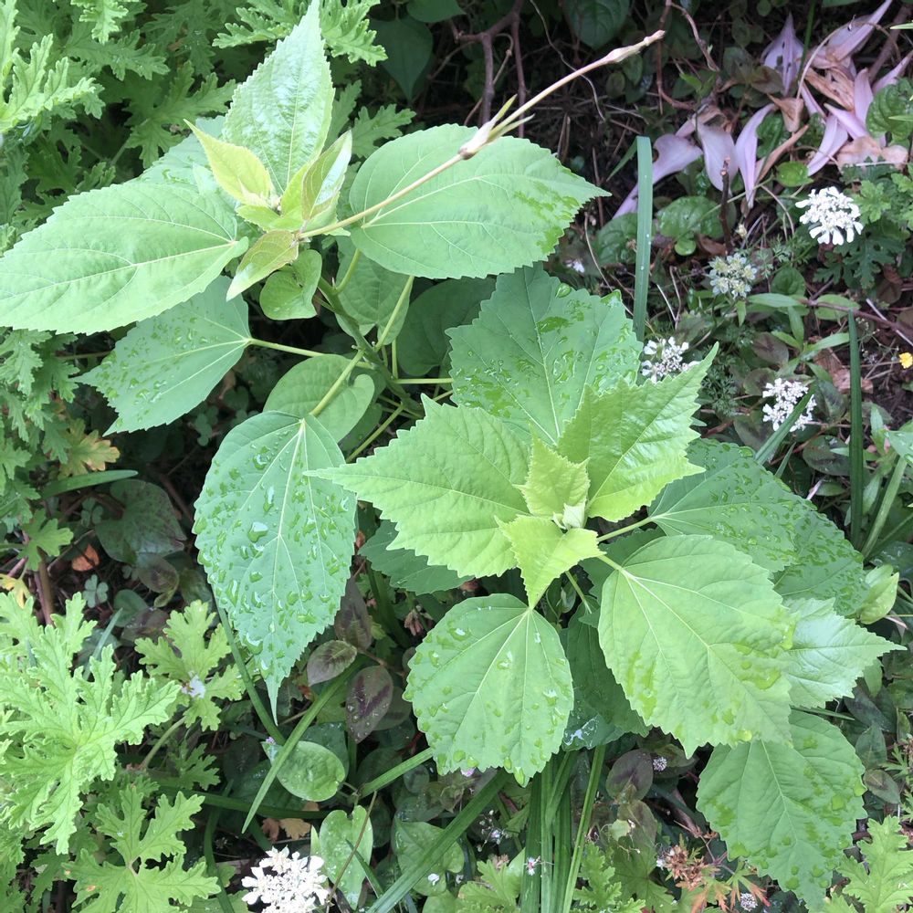 5.モミジアオイ。植え付け2年目の去年は2株咲いたが花数は少なかった。3年目の今年は花が増えて欲しいな。といいつつ2株めどこにいるのか見当たらん。