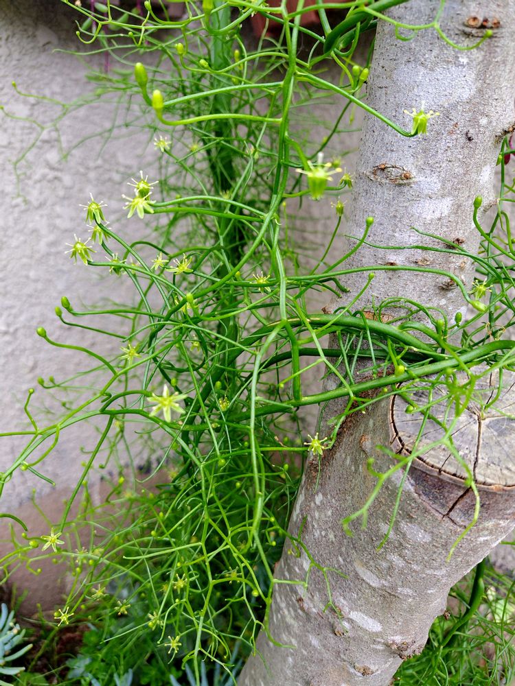 多肉男子の置き土産 ボウイエア・ボルビリス(蒼角殿)さんのお花さんが咲きました😻🧡🤍💚