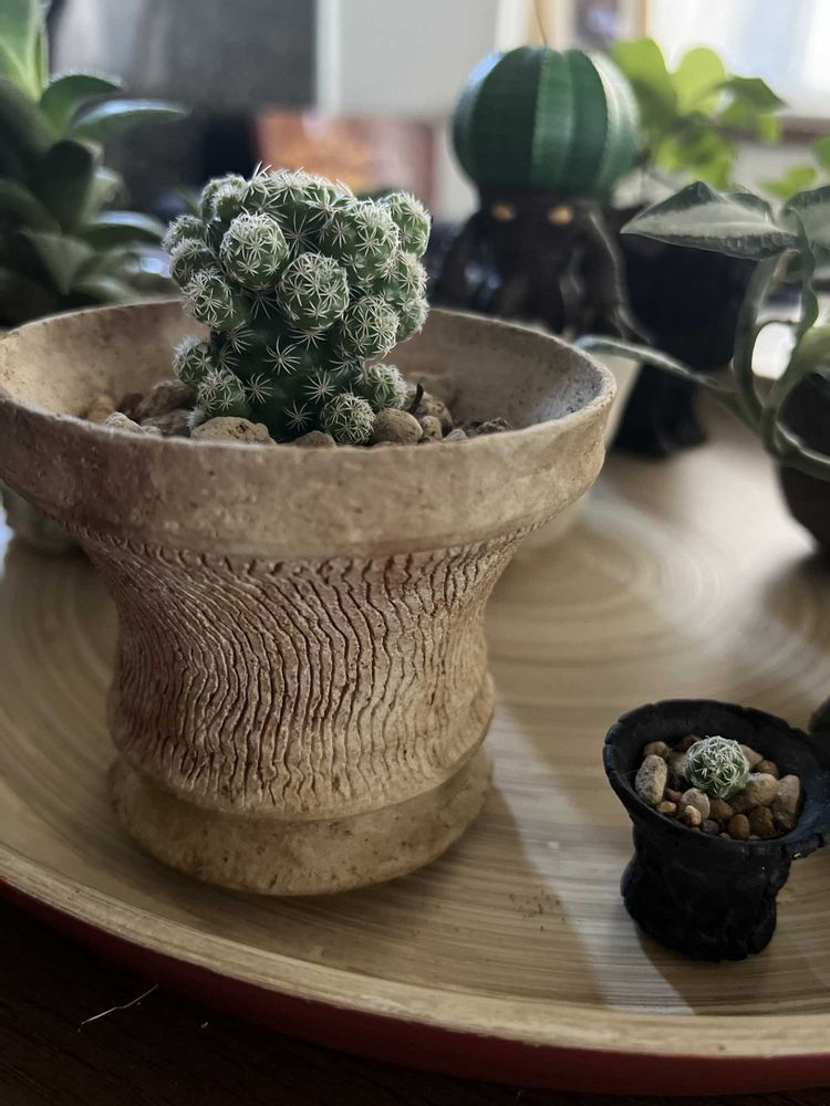 サボテンの可愛さも然ることながら、土器の様な鉢も可愛い🥰
