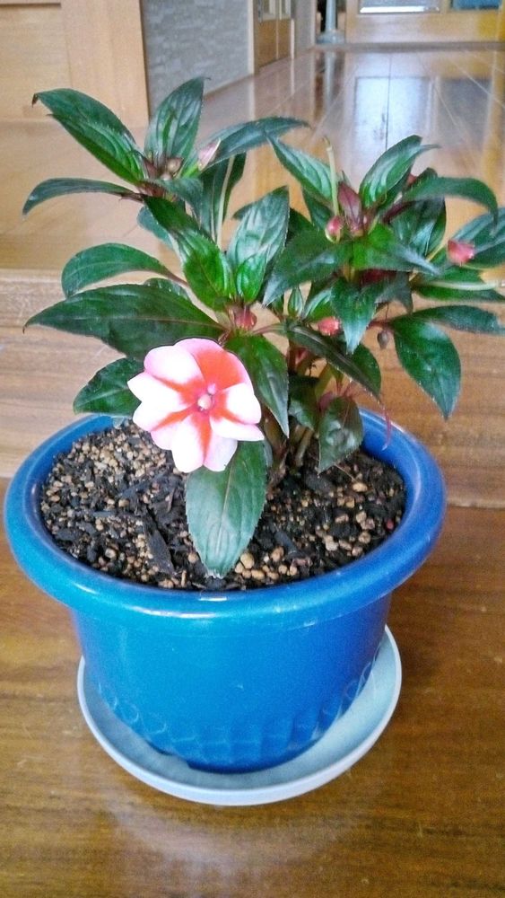 先日、まだ蕾ばかりだった「ニューギニア・インパチェンス」の花が咲きました🥰