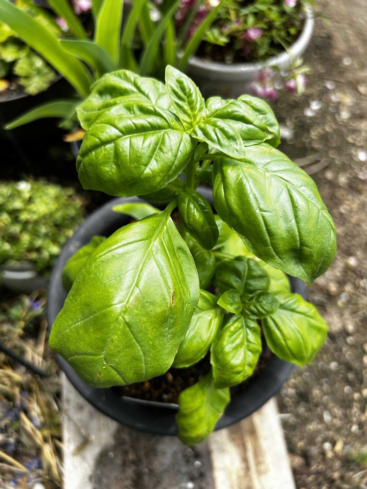 途中寄った大桑道の駅でバジルの苗100円を見つけて、今年種まきしてなかったので、鉢に植えました。