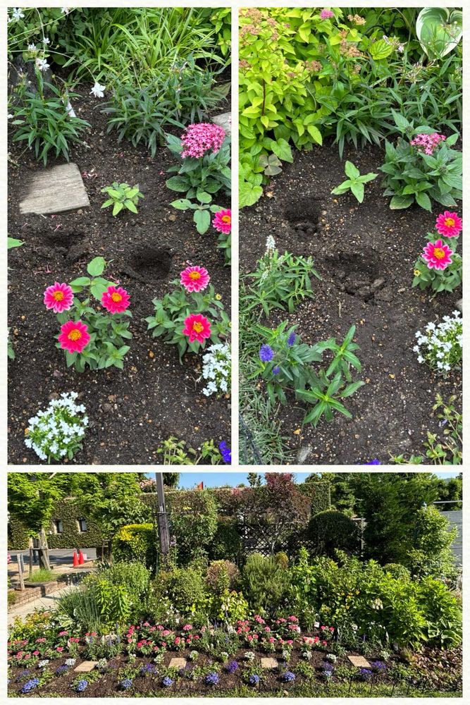 ❶先日植栽したボランティア花壇が気になって買い物前によってみたら『花泥棒』が来てました😡