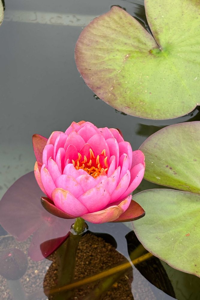 ❷❸ボランティア花壇のある公園に今年から「睡蓮」が置かれてます。「メダカ」もいて子どもたちに人気のようです♪