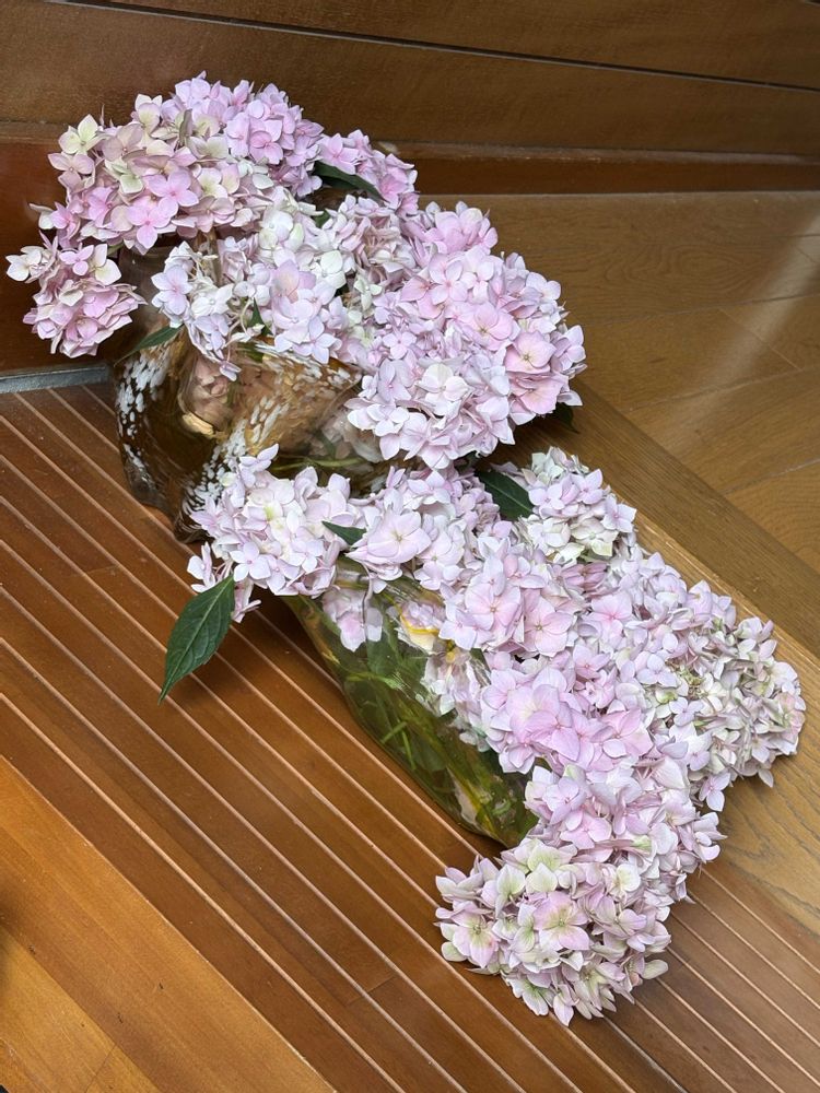 🩵💙💜系ばかりの我が家の紫陽花を持って行ったから🩷は嬉しかったみたい