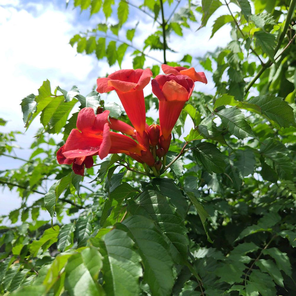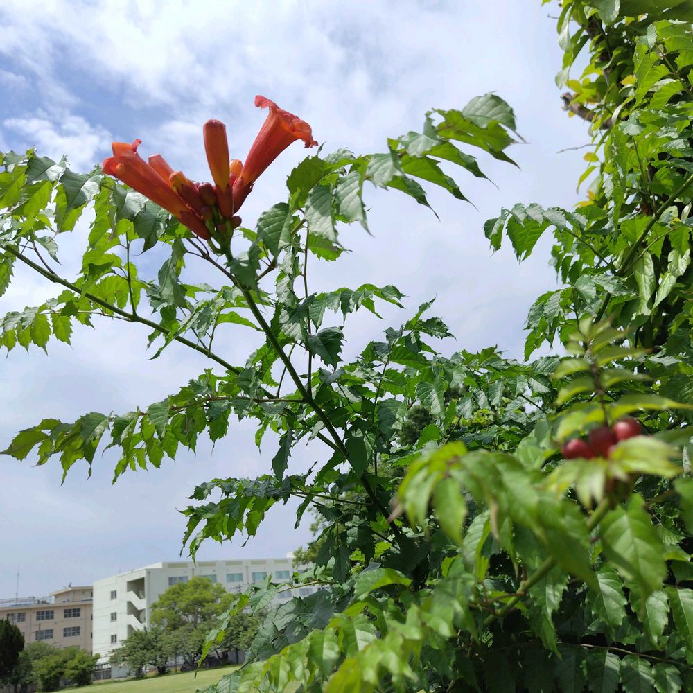 ノウゼンカズラ❤️🧡🌿のお花が艶やかに…✨️✨️