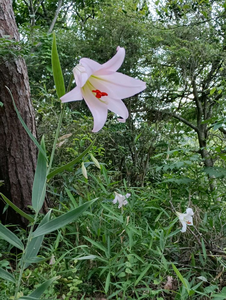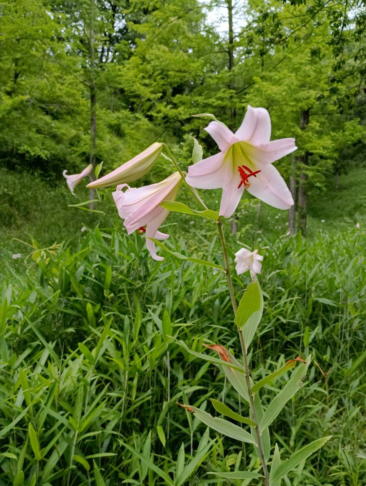 辺り一面、みどりの明るい森で、ササユリの花が映えます😆✨