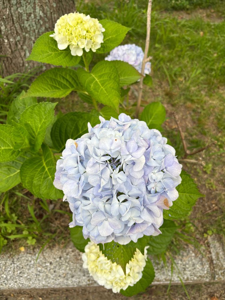 公園の紫陽花。白から淡いブルーに変わってきました🩵