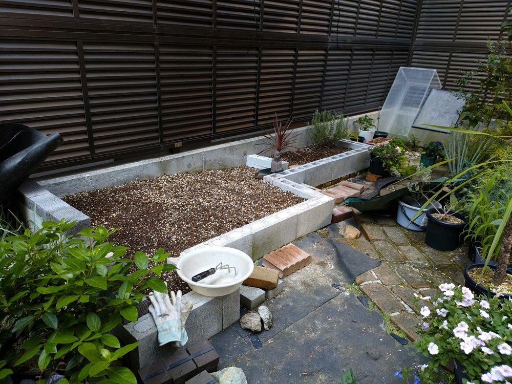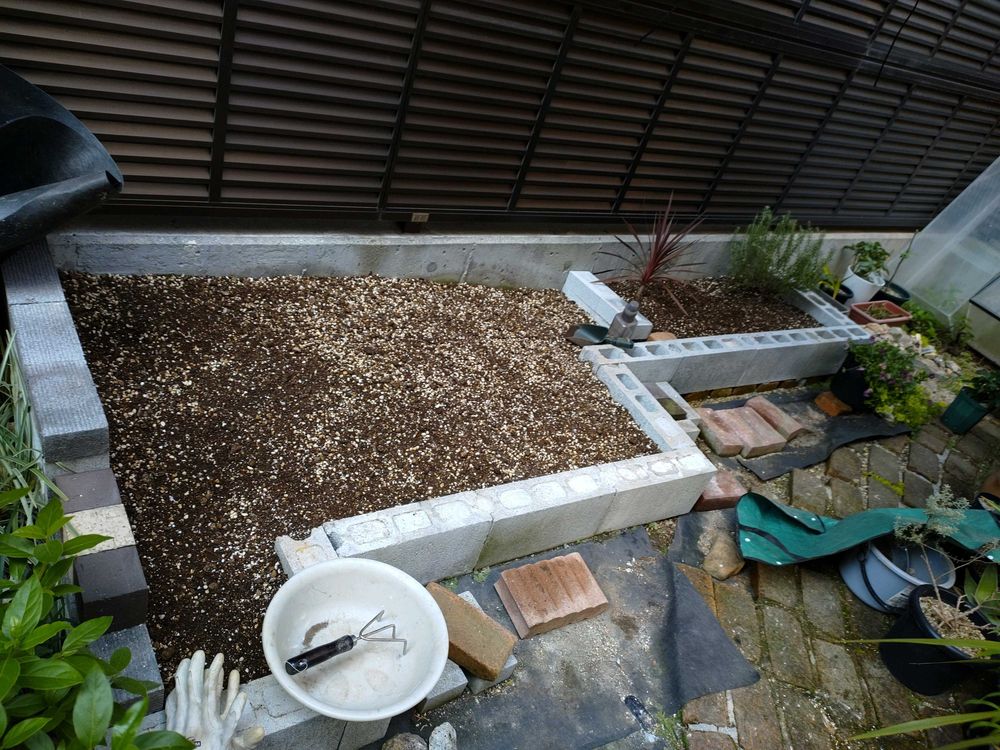 我が家のブロックで作ってるドライガーデン予定の花壇😊