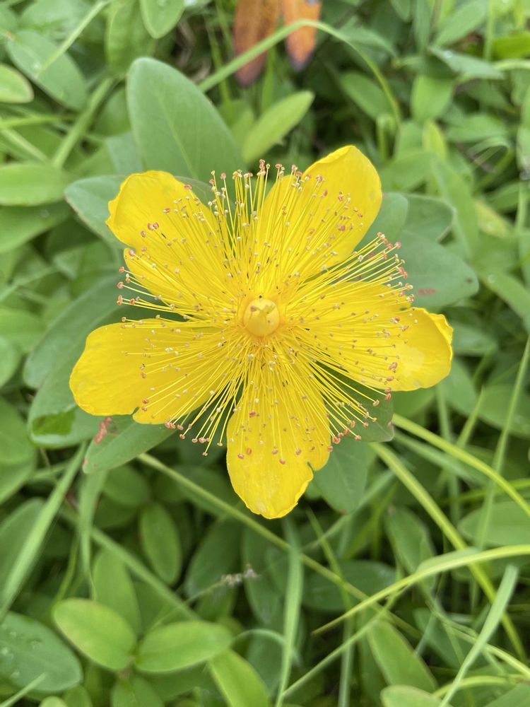 長い雄しべの先にある葯の色が、オレンジ色をしているので、セイヨウキンシバイ(ヒペリカム カリシナム)だと思いますね🟠