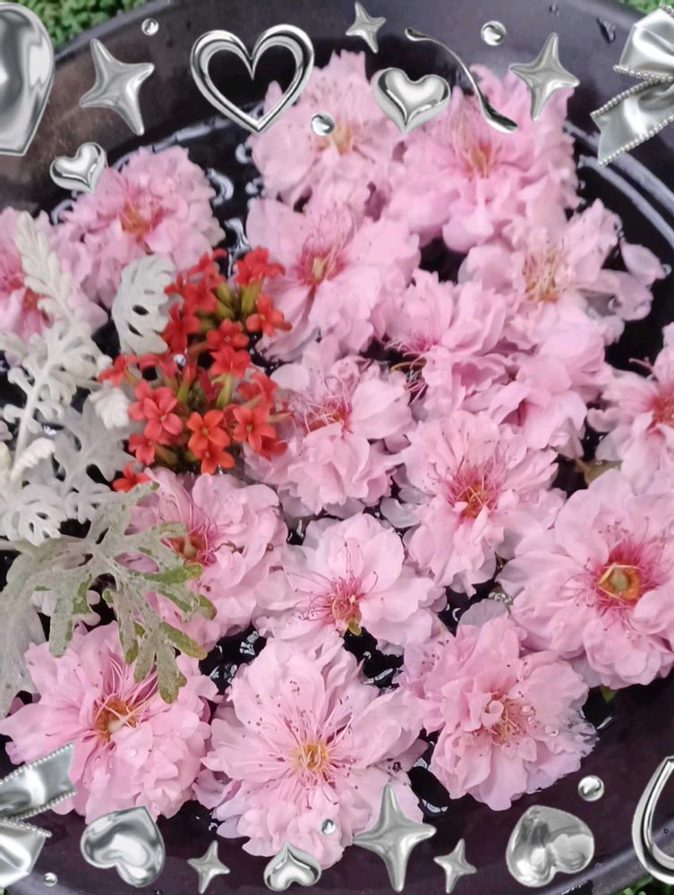 枝垂れ桃の花ちょびっとだけ花浮かせできてたわ🤭😁☺️ありがとうです〜💕💕