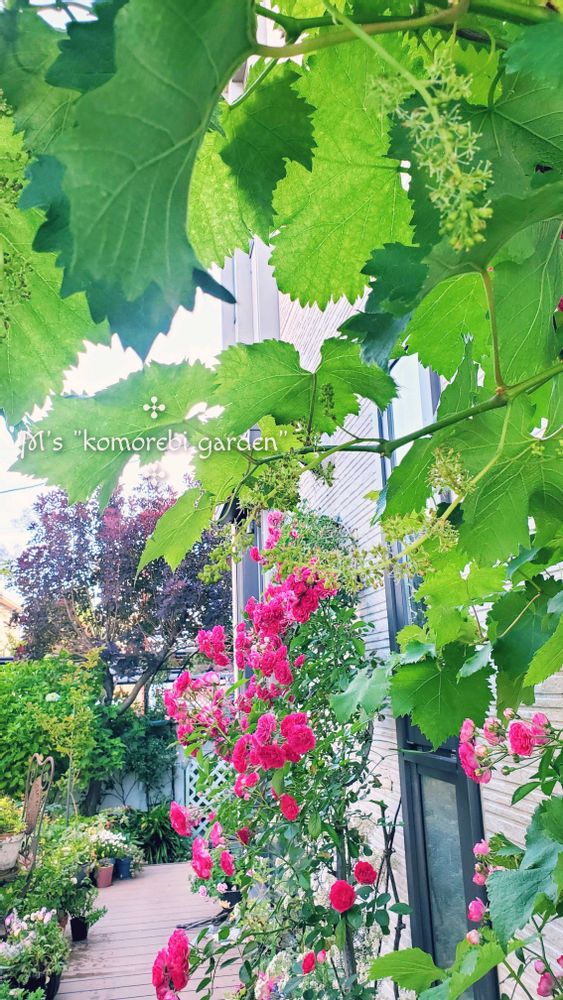 はい、庭のウッドデッキの所に、毎年色んな方向に枝を伸ばして、ワイルド🍇になってくれるんですよ~😎✨