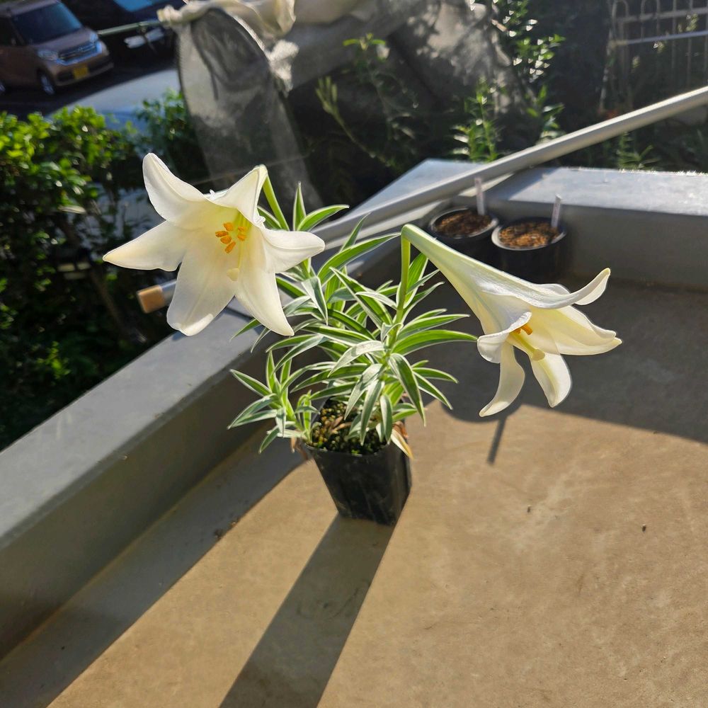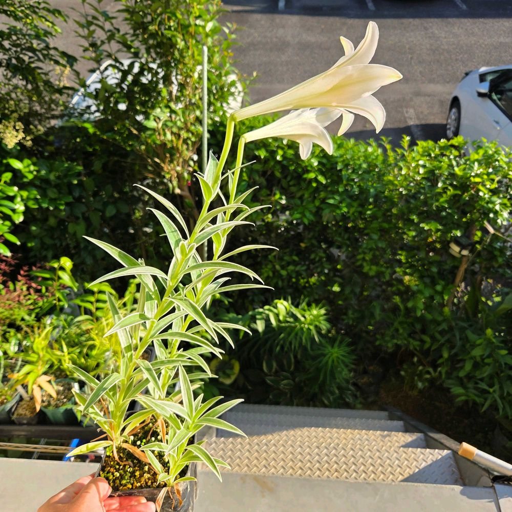 屋久島産の斑入りテッポウユリが開花しました😍😍