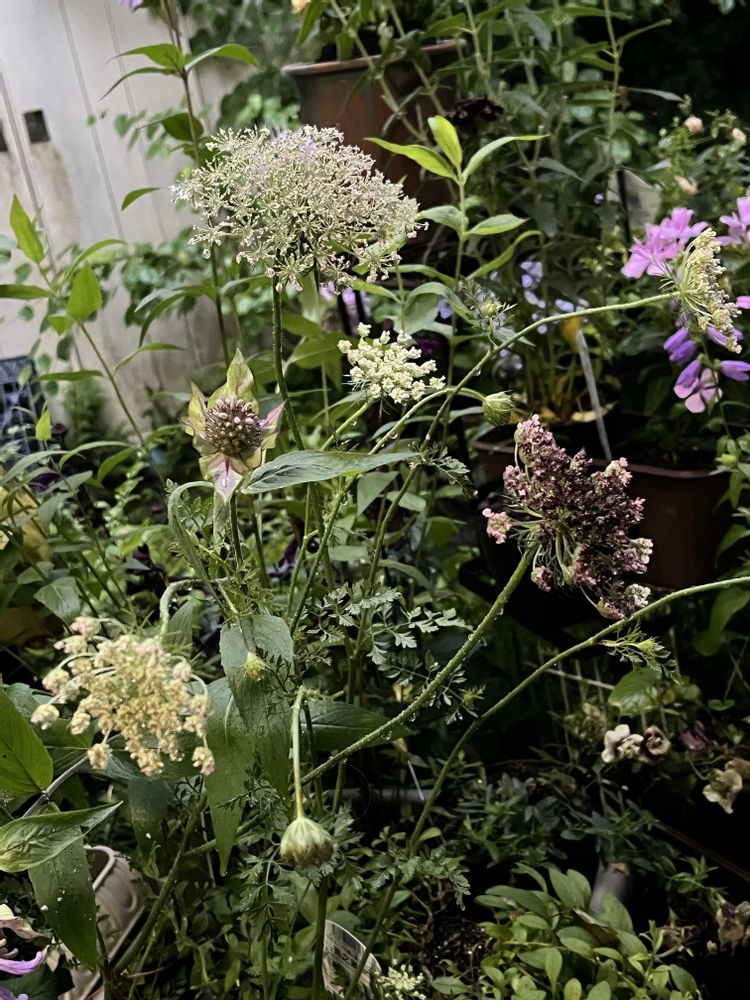 ❶❷レースフラワー✨✨何かのオマケで付いてきた種子を蒔きました…ほとんどがホワイトでしたが、二株だけピンクとブラック(濃い赤)が入っていました👍🎀セルトレーで種蒔きしてポットに上げたきり、いまだに105mmポットのままもう少し構ってやれば良かった…ちょっぴり後悔☺️