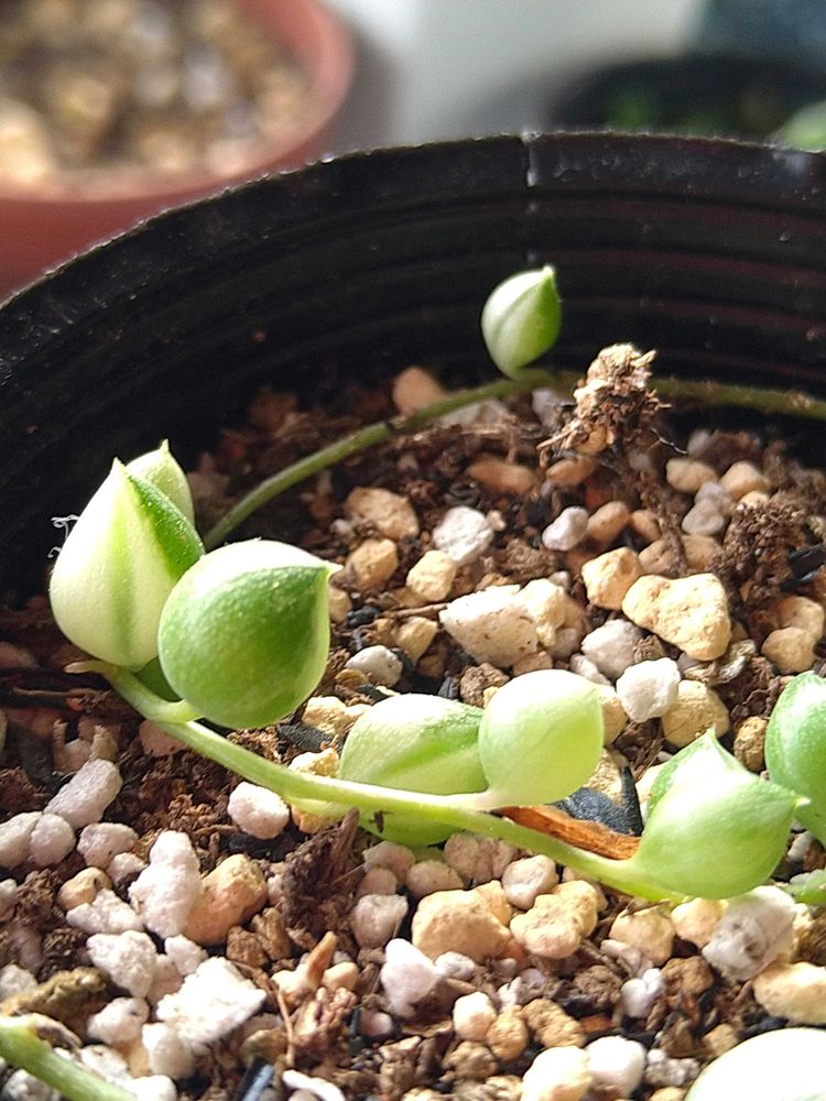 普通のグリーンネックレスさんが挿し芽したら斑入りになりましたよ😊