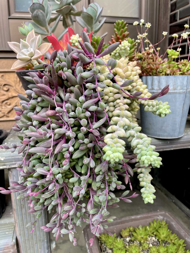 ピーチネックレスは娘の所へお嫁に行きましたが、いつの間にかネックレス系の鉢だらけ…グリネ、ルビネ、ハートカズラそれぞれ3鉢はあります😁