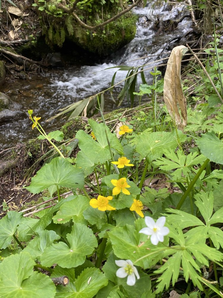 ニリンソウ、リュウキンカと小川😊
