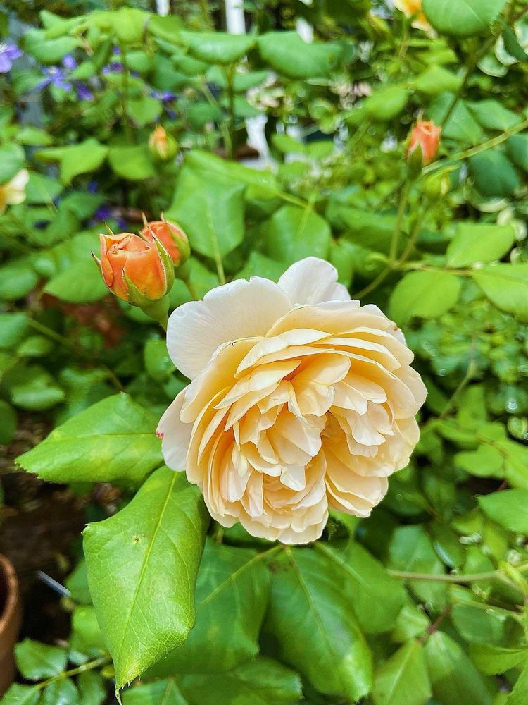 1番花のオオトリYukikoがまだ満開じゃない中、2番花のロアルドダールが咲いております💛