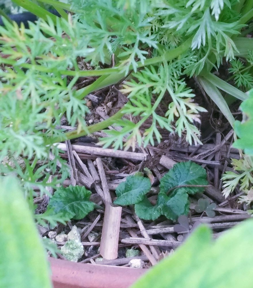 ②③ プリムラが植えてあった鉢に野良🥕が勝手に生えてきて、プラムラも去年の夏に🌟になったと思っていたらなんと!小さな葉っぱ🌿が出てきてました✨😲