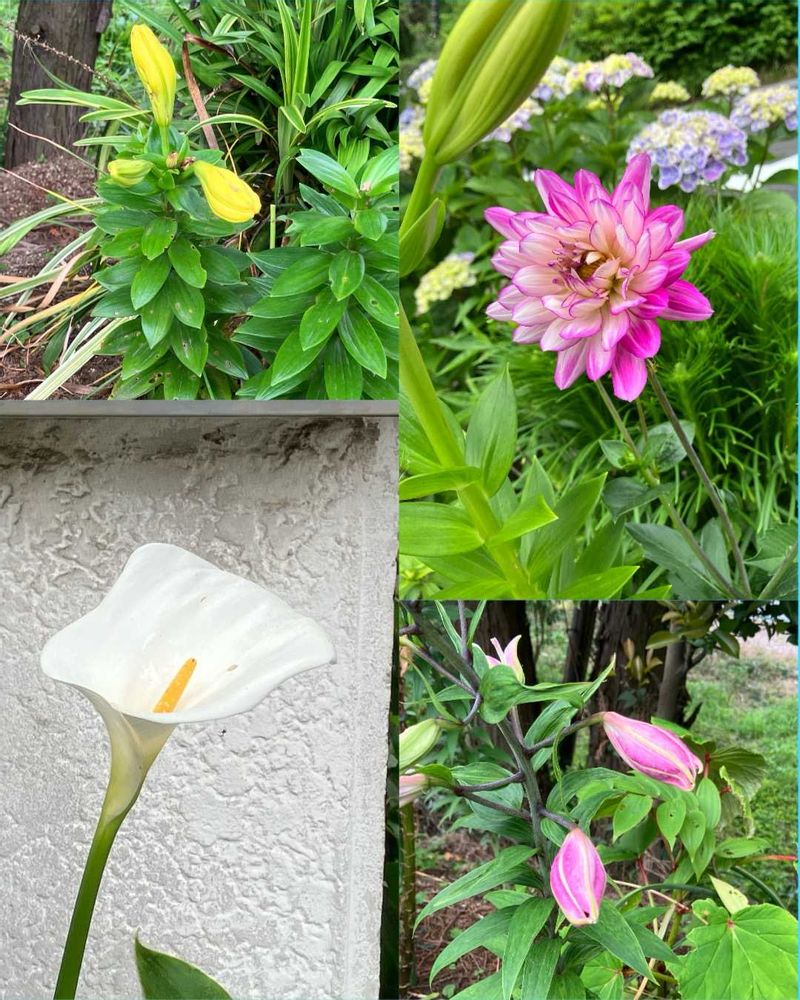 ③ユリ(蕾)、ダリア,カラー