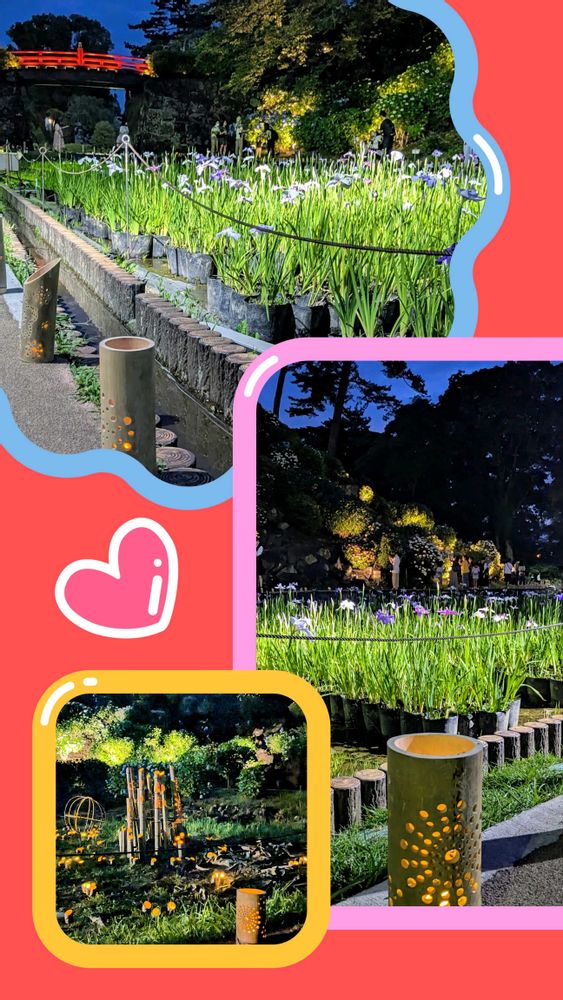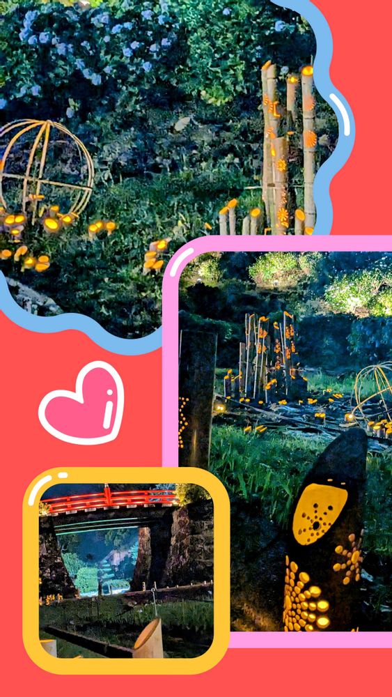 1枚目の竹灯りが顔に見えて面白いです😊✌️