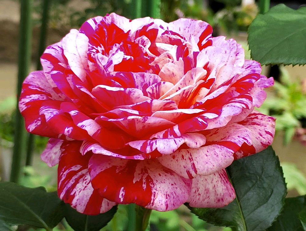 白が多めの絞り咲きなので、紅白のコントラストがハッキリしています🌹