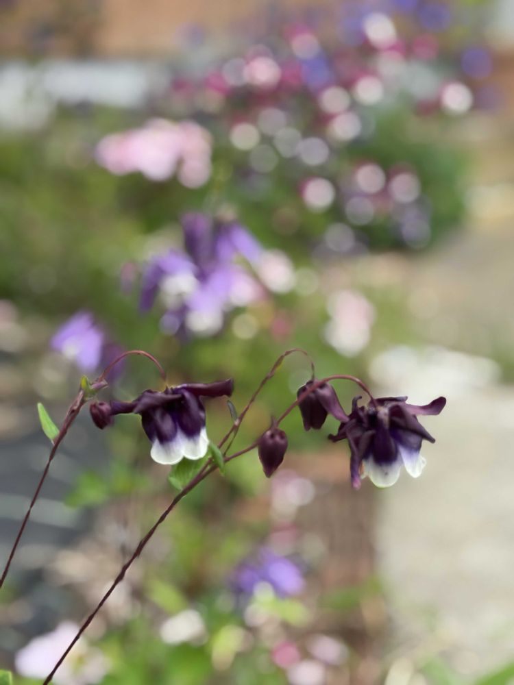 クレマチスの前に咲くオダマキさん達🌸💜🩷