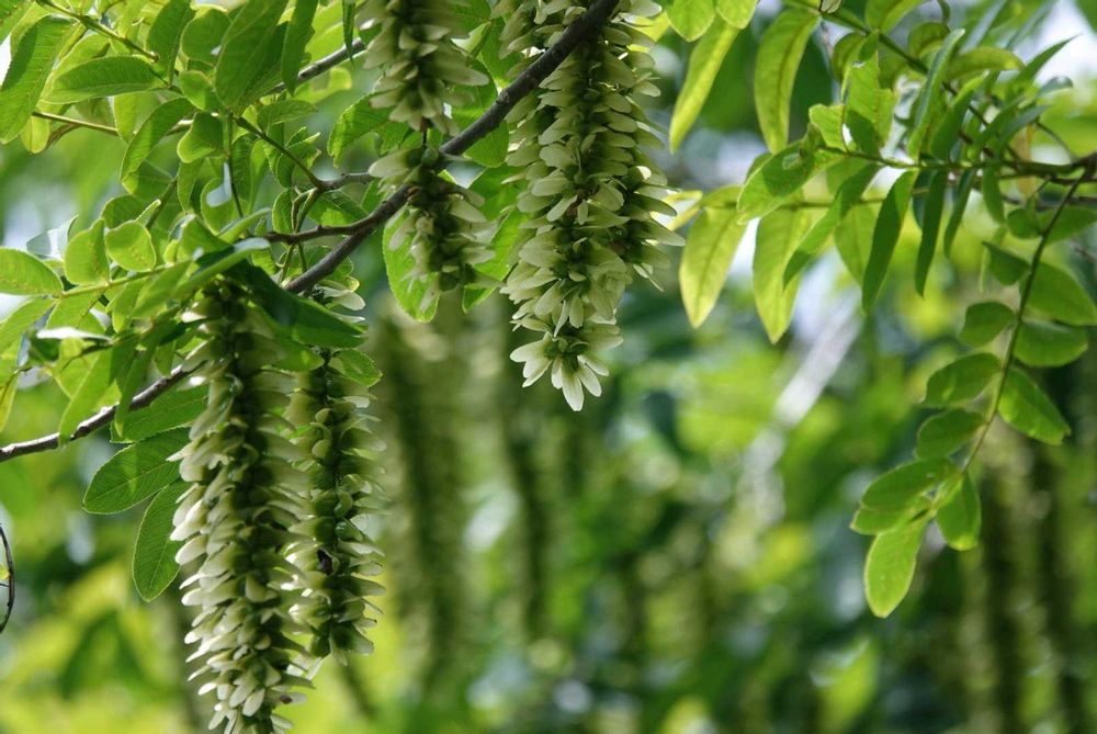 写真を拡大して翼らしきモノが見えるのと偶数羽状複葉のように見えるのでシナかなと思いますが、写真からのみの判断で確信はありません。
