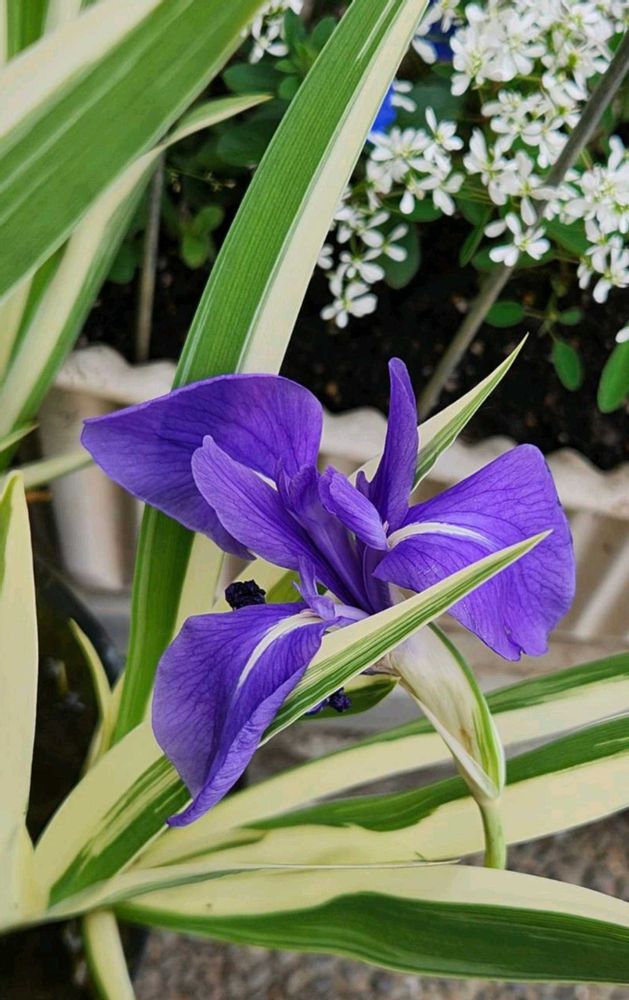 斑入りのカキツバタ〜シューッとして涼しげで、カッコよくて花も紫で素敵デス〜💜✨🥰