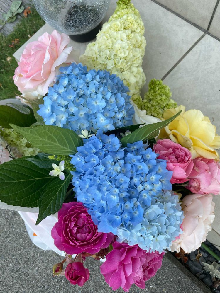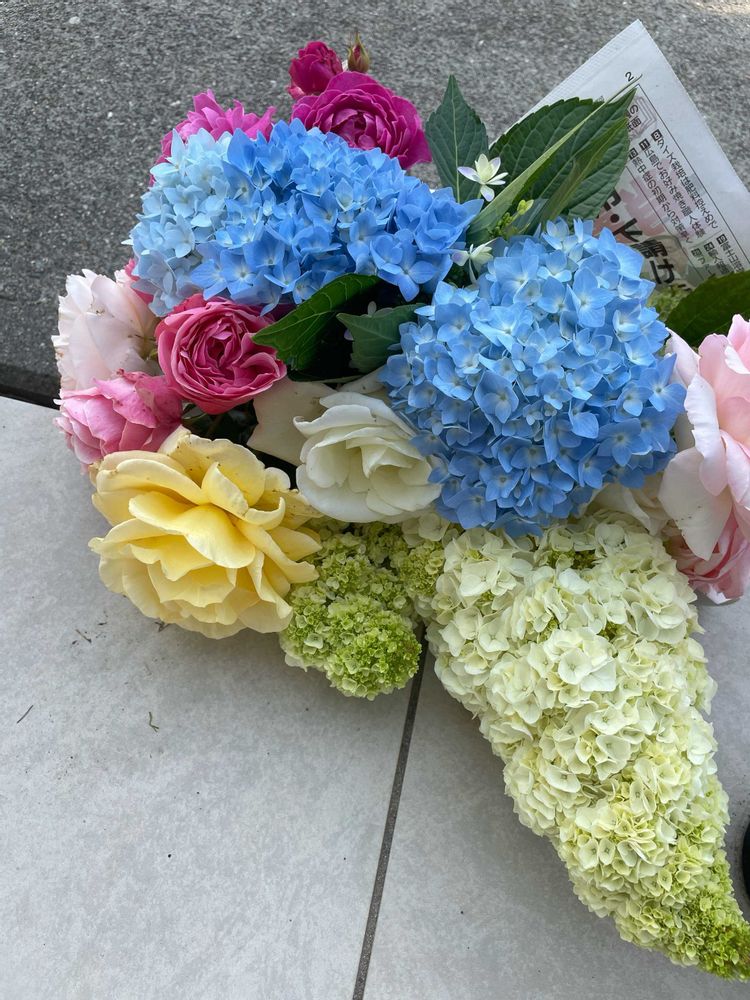 まぁ綺麗 暑い時期の切り花でも生き生きしていますねカラフル🪿💦💦💦🩵💛❤️🧡🩷🤍😄💦💦