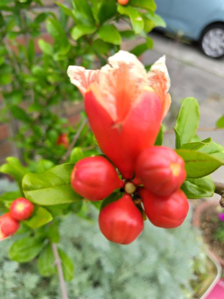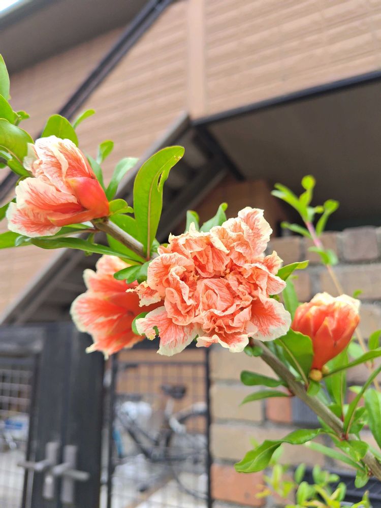 ご近所さんの玄関先に咲いているハナザクロ 初めて見ましたが綺麗✨