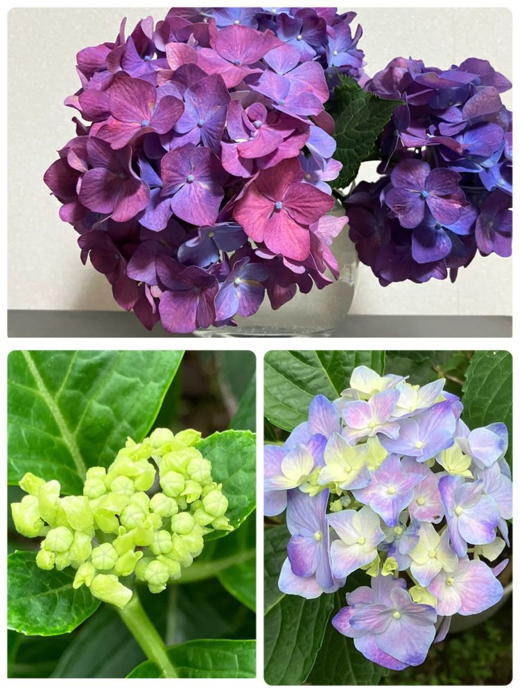 こんなに色が変わる紫陽花だったのかとびっくりです💜💙💚