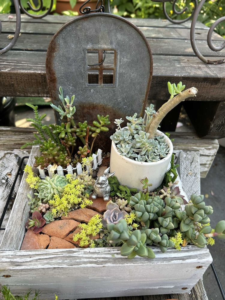 大きめの鉢に割れた鉢で小径を作り〜何となく🌵レイアウト